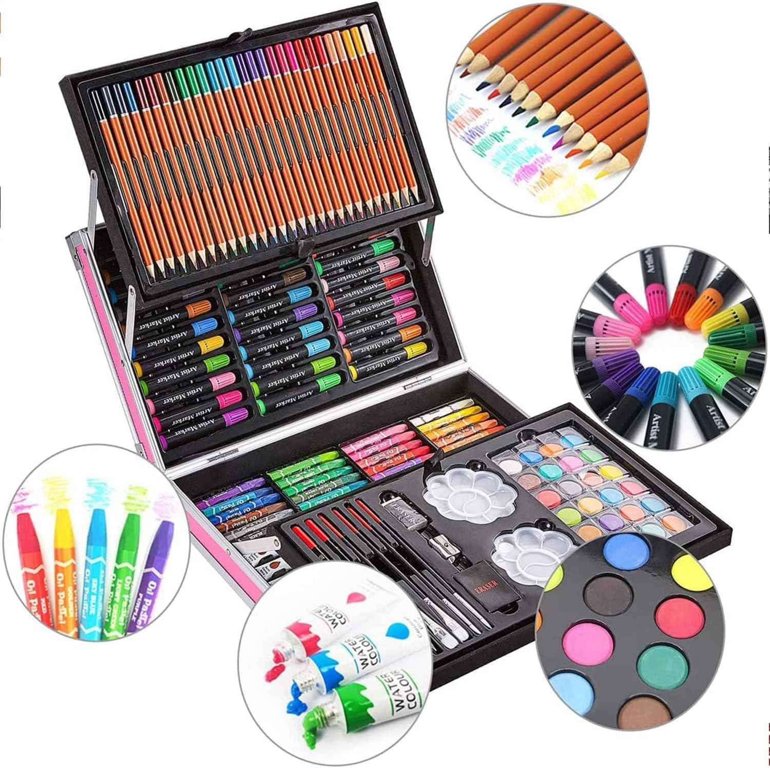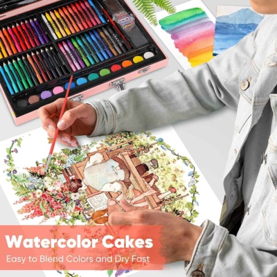 ✅Všetko je zabalené v pohodlnom, hliníkom vystuženom kufri, ktorý sa dá ľahko zložiť, zavrieť a vziať so sebou – do školy, škôlky, umeleckej školy alebo na výlet maľovať do prírody!