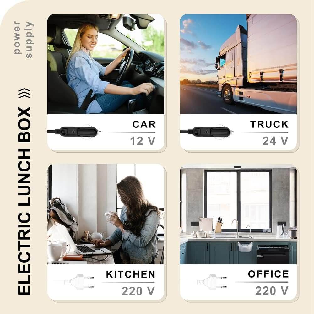 ✅Obedovú krabičku jednoducho pripojíte k zásuvke zapaľovača cigariet pomocou odnímateľného adaptéra (súčasť balenia), počkáte niekoľko minút a potom si môžete vychutnať teplé jedlo, nech ste kdekoľvek.