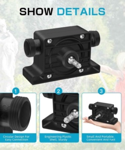 ✅ Jednoduchá obsluha – čerpadlo pre použitie s vŕtačkou sa ľahko inštaluje, nevyžaduje batérie, stačí pripojiť vodovodný kábel k vodnému čerpadlu, upevniť vodné hadice pomocou svorky a nakoniec priložiť vŕtačku. Pred použitím je potrebné skontrolovať smer šípky na čerpadle. Ak je nastavenie nesprávne, čerpadlo nebude fungovať správne.