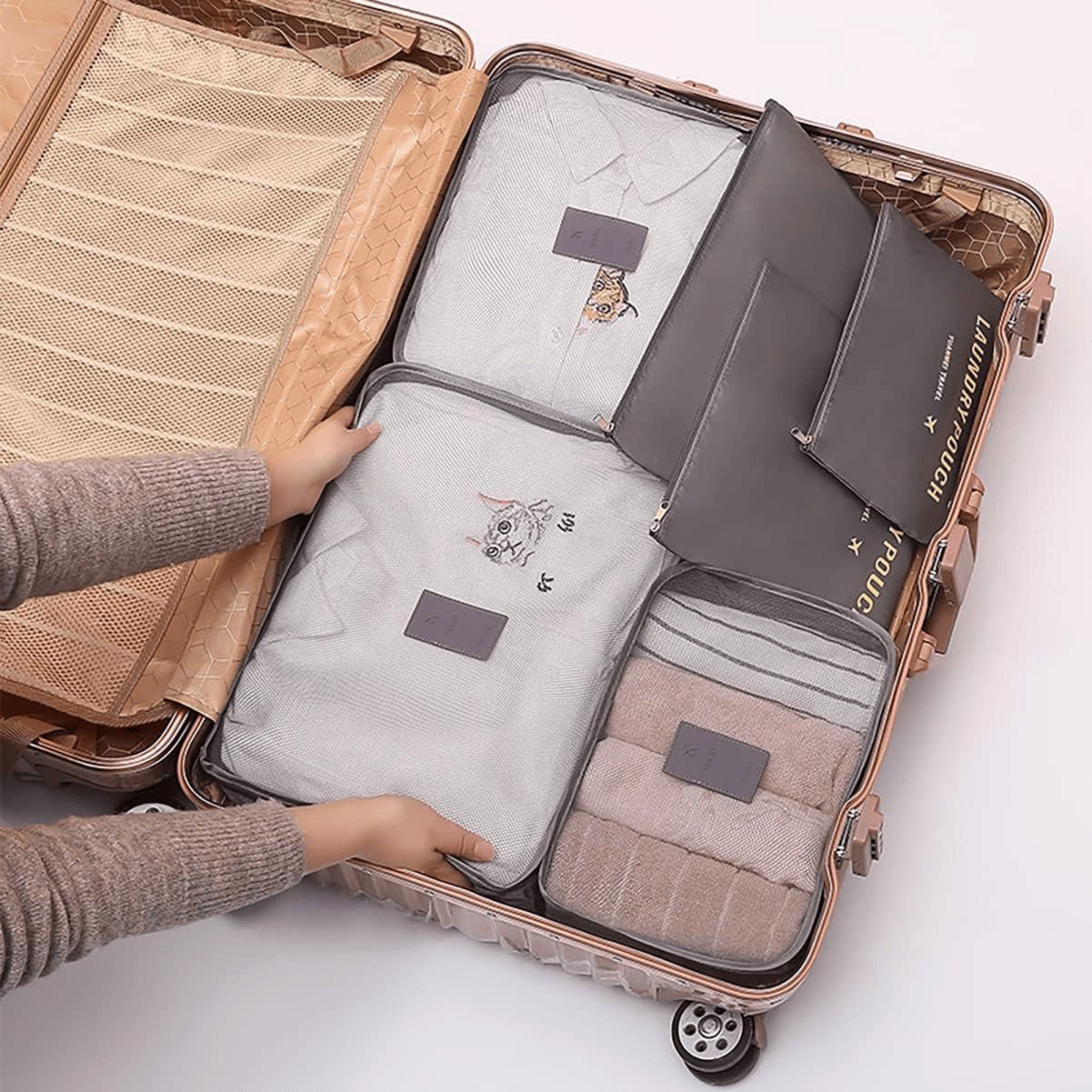 ✅Pohodlný cestovný organizér pozostávajúci až zo 6 prvkov – 3 nezávislých vrecúšok a 3 organizérov! Všetky sa zapínajú na zips a majú veľa priehradiek a vreciek! Je to skvelý spôsob, ako mať každodennú kozmetiku v poriadku! Sú skvelé aj na cesty, ľahko sa do nich zmestí všetka najdôležitejšia kozmetika a ďalšie drobné doplnky tohto typu, ako napríklad rúž, púder, či štetce. Vďaka šikovnému dizajnu do nich bez problémov vložíte aj spodnú bielizeň a oblečenie. Celé sa to bez problémov zmestí do príručnej batožiny a nezaberie toľko cenného miesta. Zapínanie na zips značne sťaží stratu prenášaných drobností a zároveň v nich udrží poriadok. Všetky prvky súpravy majú pohodlnú rukoväť, vďaka ktorej sa pohodlne prenášajú. Postarajte sa o svoju batožinu v poriadku ešte dnes!
