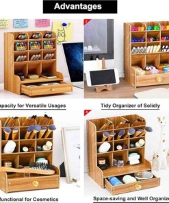 ✨Usporiadajte si svoj pracovný stôl s praktickým dreveným organizérom na písacie potreby! Zabudnite na chaos a neporiadok okolo seba a vylepšite si svoj pracovný kút do dokonalosti! Organizér ponúka veľké množstvo priestorných a rôznorodo tvarovaných priehradiek, kam môžete uložiť ceruzky, pastelky, pero, ale aj nožnice alebo napríklad poznámkové bloky. Každá písacia potreba tak v organizéri nájde svoje miesto a vždy bude pripravená hneď po ruke!