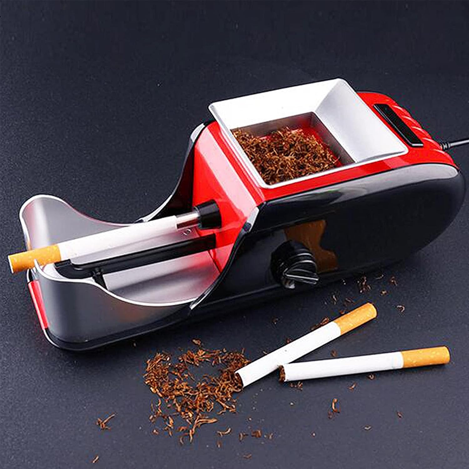 😊Elektrická plnička cigariet je ideálna na výrobu cigariet doma alebo vonku. Vďaka tomuto efektívnemu strojčeku na cigarety môžete za krátku dobu pripraviť jednu alebo dokonca celú krabičku cigariet súčasne. Príprava krabičky cigariet môže trvať iba 5 minút. Použitie plniva do cigariet znižuje výrobné náklady každého balenia až o 80%. Kvalita cigariet vyrobených elektrickým cigaretovým automatom sa nelíši od tých, ktoré nakupujeme v obchodoch, a často môže byť ešte vyššia.