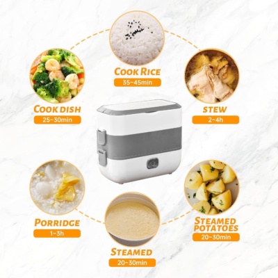 Tento elektrický lunchbox je vybavený dvojitým napájaním – môžete ho pripojiť štandardnej zásuvke doma, že si horúci obed môžete vychutnať nielen doma, ale aj na cestách. To je ideálne riešenie pre dlhé cesty, pracovné výlety alebo pikniky.