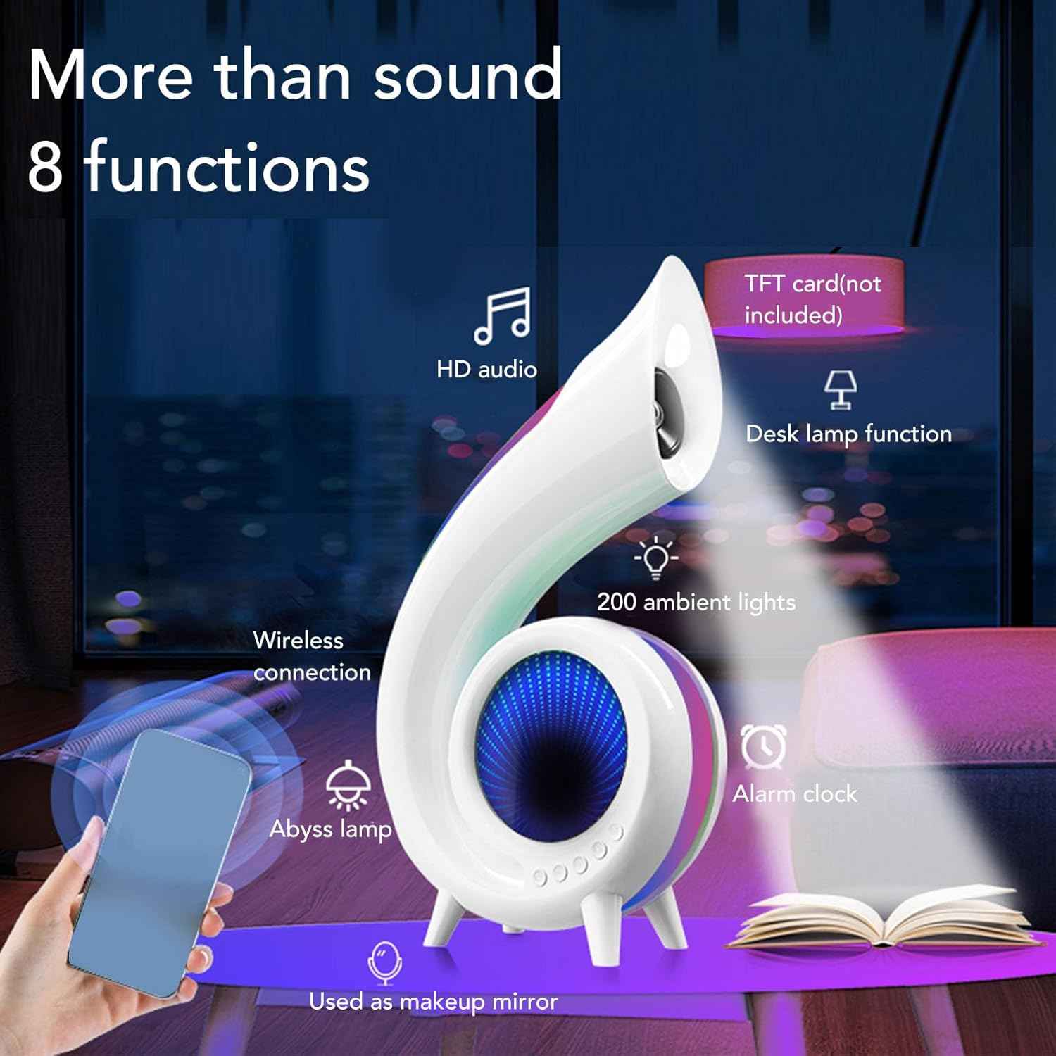 ✅Lampa s 256 farbami RGB s hodinami, integrovanými reproduktormi Bluetooth na počúvanie hudby, mikrofónom na hovoryje moderným a praktickým doplnkom do izieb, spální a kancelárií. Lampu využijete nielen na praktickú funkciu hodín ale aj na zábavu a relaxáciu po náročnom dni.