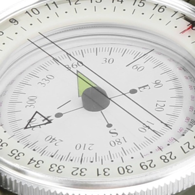 🧭Otočný limbus (otočný prstenec so stupnicou v stupňoch pre určenie azimutu na mape a stupnicou 36° s polstupňami. Otočný číselník je vybavený fluorescenčným prstencom, ktorý svieti v tme. Otočný limbus umožňuje presné určenie smeru, vďaka ktorému môže užívateľ ľahko určIť a sledovať svoj kurz. Vrúbkované strany azimutového prstenca uľahčujú používanie v rukaviciach.