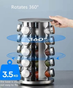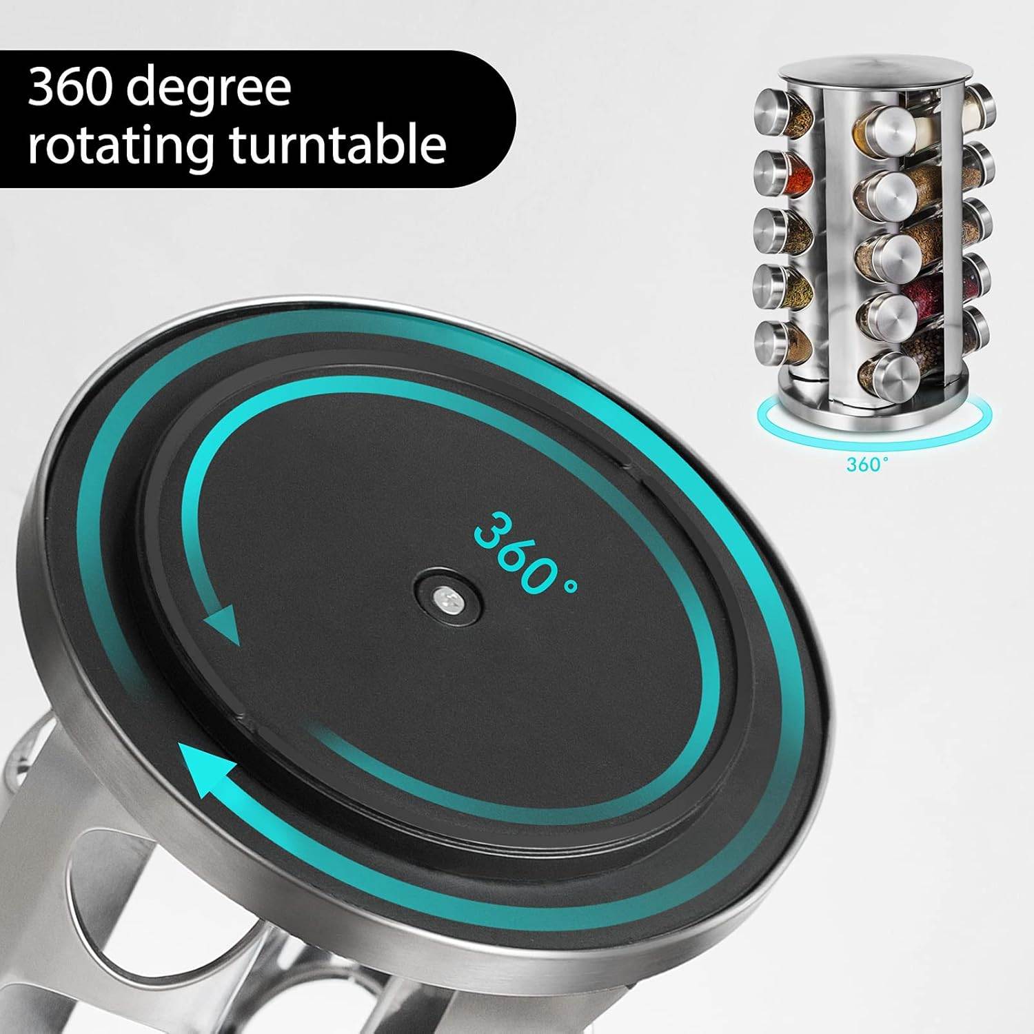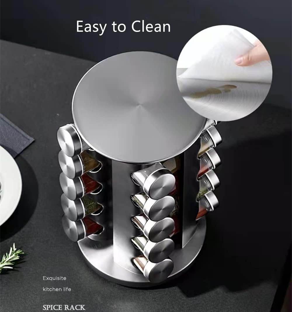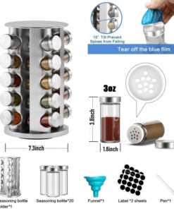 ⭐Vysoko kvalitné materiály: Poličku na korenie je možné otáčať o 360° a funkcia otáčania umožňuje rýchlo nájsť potrebné korenie. Ak chcete ušetriť ešte viac miesta, môžete nad miestnosťou umiestniť niekoľko pohárov na skladovanie. Polička na korenie je vyrobená z vysoko kvalitnej nehrdzavejúcej ocele s hladkým povrchom bez tŕňov. Odolné voči prachu, vlhkosti a hrdzi. Sklenená fľaša na korenie je vyrobená zo skla určeného na styk s potravinami a otočná základňa je pevná a stabilná