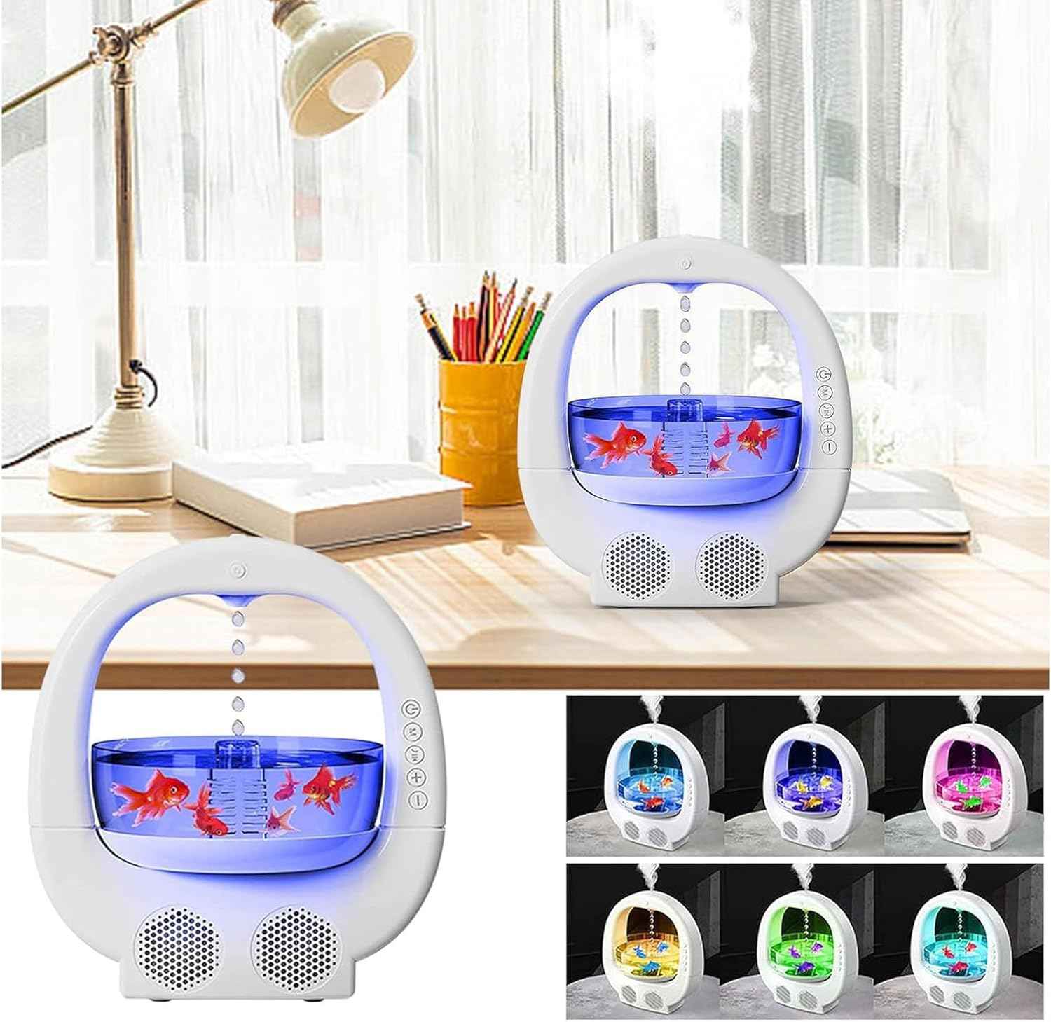 ☑️5. DIZAJN NÁDRŽE NA RYBY: Viacúčelový stolný reproduktor zvlhčovača má dizajn akvária, môžete si vychutnať voľné plávanie malých rýb, čo dodáva životu zábavu.