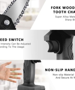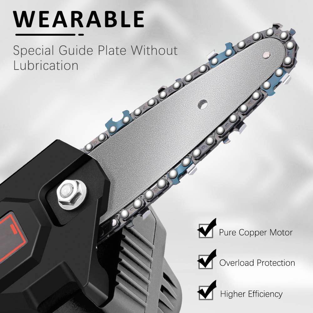💯Bezpečnosť: Naša nabíjateľná mini reťazová píla je navrhnutá s ohľadom na bezpečnosť a má rôzne bezpečnostné prvky, ako napríklad bezpečnostný spínač a ochranný kryt pre bezpečnú prevádzku.