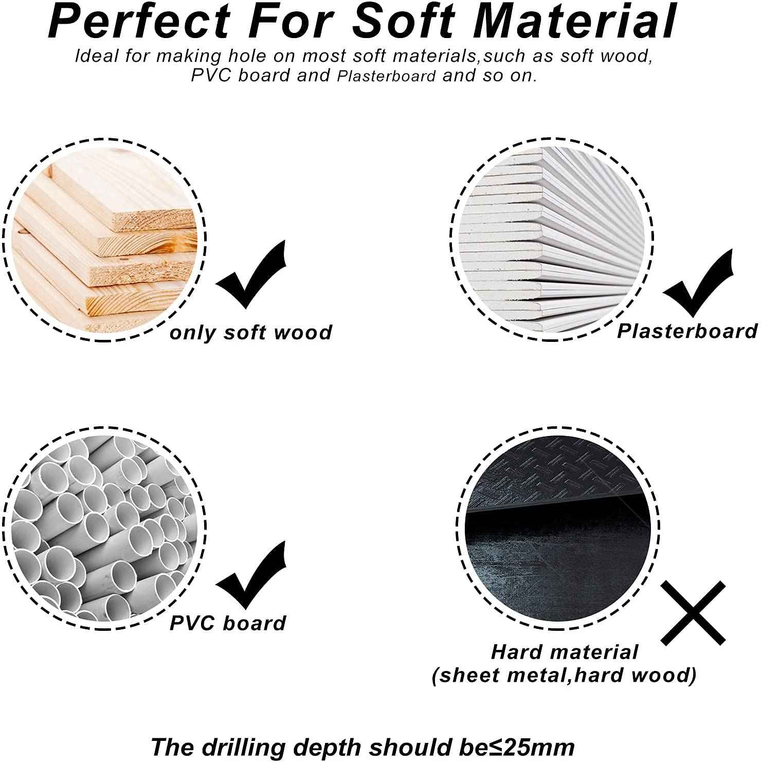 ✨Je vhodný na vyrezávanie presných otvorov do drevotrieskových dosiek, remeselných dosiek, sadry, sadrokartónu, hliníka a tenkého plechu.